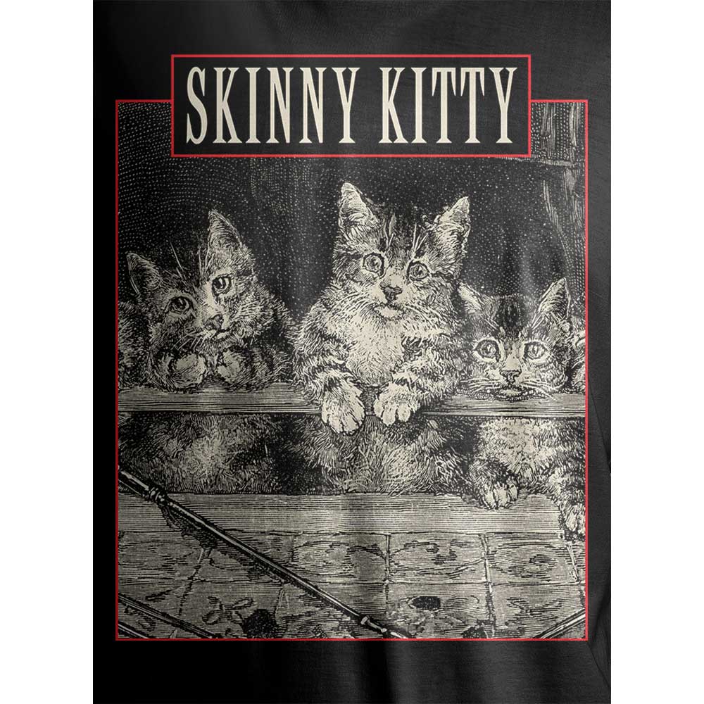 It's time to assimilate this design into your collection if you dig it. When you cleanse, fold and manipulate this, turn it inside out as the print is far too frail. The Skinny Kitty design is for dark cats after a rodent, no deep down trauma hounds. Hope you have your rabies shot or at least some first aid, this one bites!